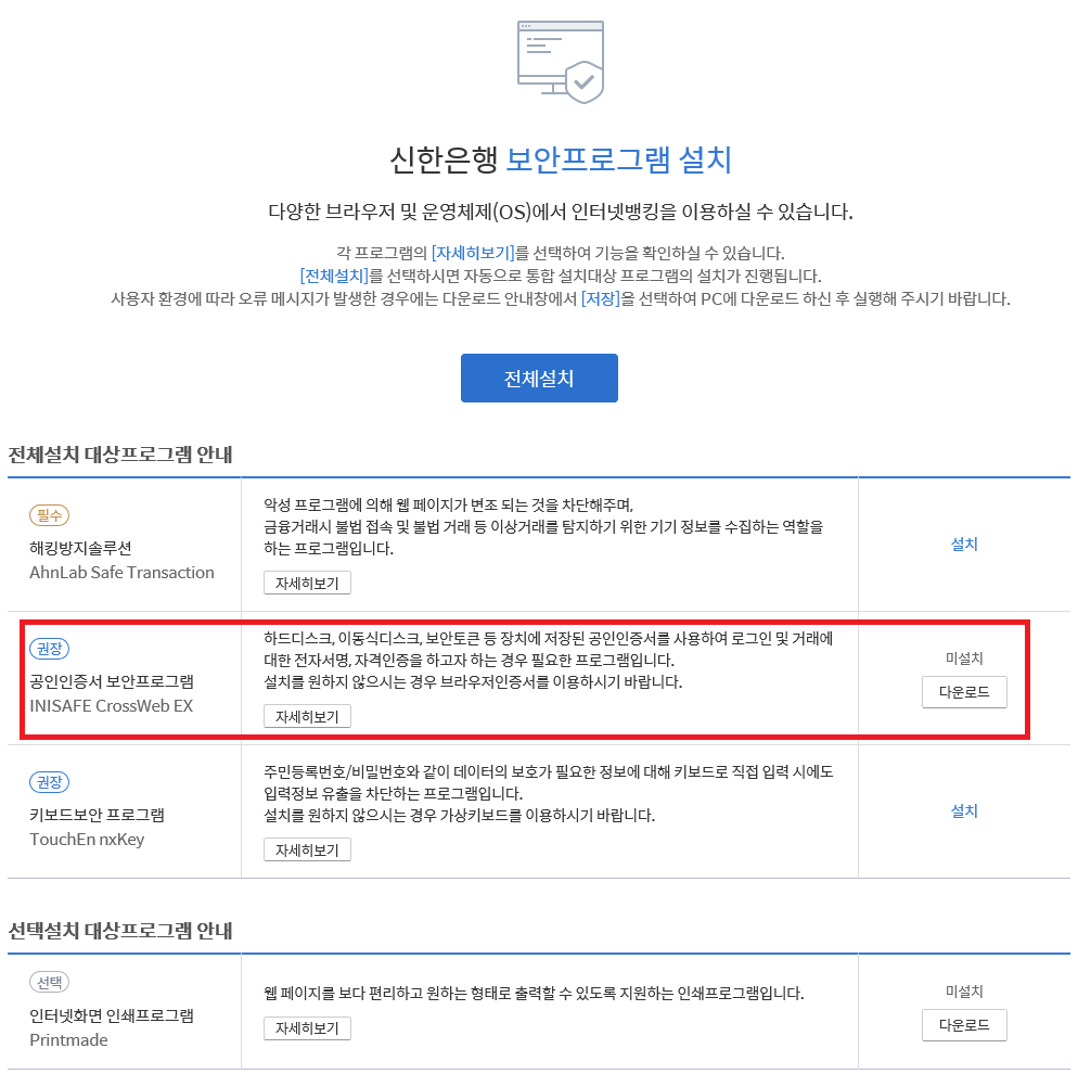 2. 보안프로그램 중 공인인증서 보안프로그램 설치